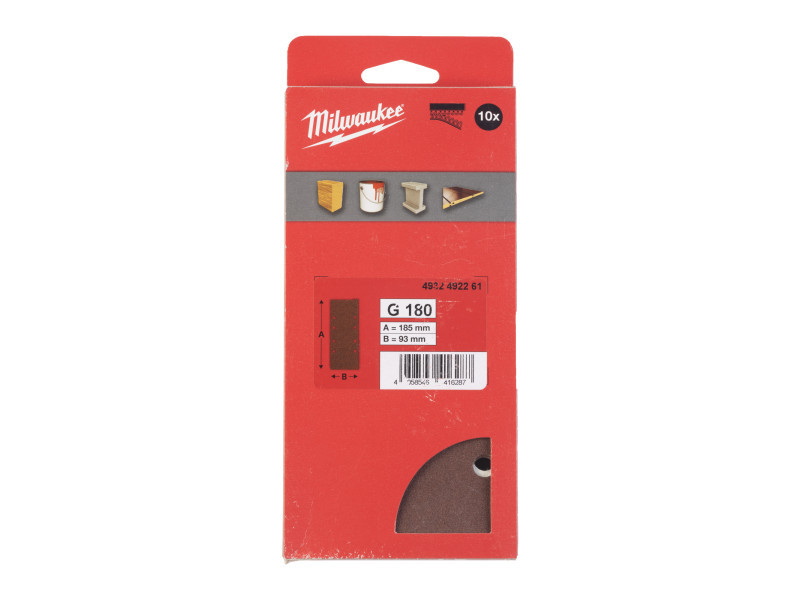 MILWAUKEE Tépőzáras csiszolólap STD 93 x 185 mm / P180 8 lyukas (10 db)