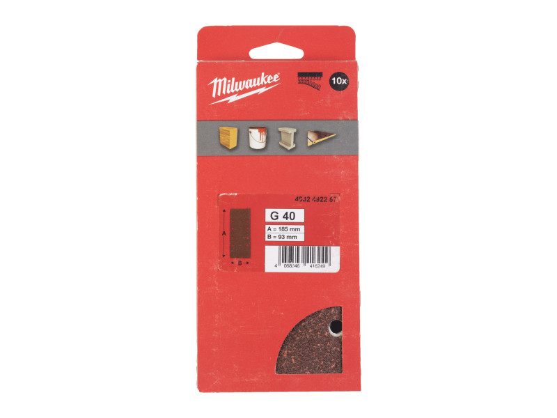 MILWAUKEE Tépőzáras csiszolólap STD 93 x 185 mm / P40 8 lyukas (10 db)