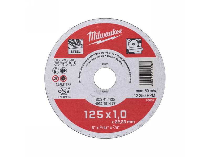 MILWAUKEE Vágókorong fémre 125 x 1,0 x 22,2 mm egyenes SCS41
