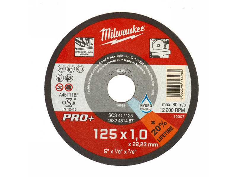 MILWAUKEE Vágókorong fémre 125 x 1,0 x 22,2 mm inox egyenes SC41 PRO+