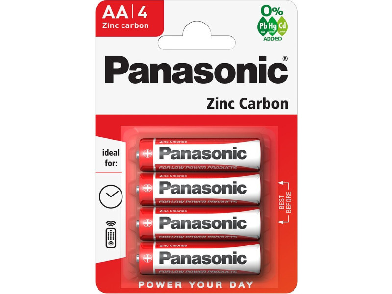 A Panasonic cink-szén elemek a kisfogyasztású készülékek gazdaságos áramforrásai.