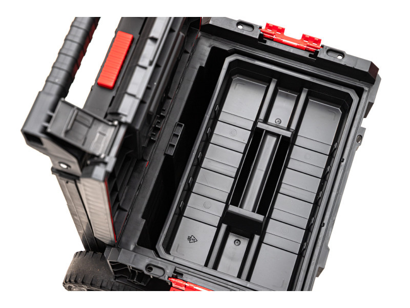 A Qbrick System PRO Cart egy kerekes, mobil szerszámosláda, teleszkópos alumínium fogantyúval, amely egyben az új, több modulból álló és legkompaktabb PRO sorozat alapja is. A láda nagyméretű, gumibevonatú kerekekkel rendelkezik, amelyek fém tengelyre vannak felszerelve.