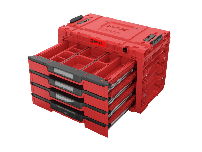 QBRICK SYSTEM PRIME 4 Fiókos szerszámosláda Red Ultra HD