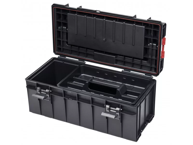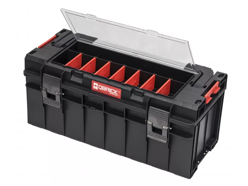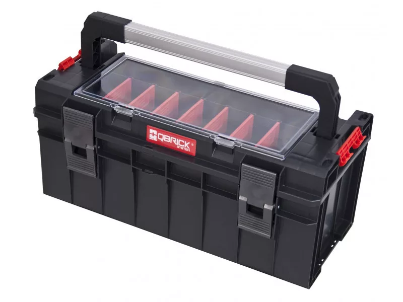 Oldalsó rögzítő csatlakozók a szerszámosládák egymáshoz való vízálló csatlakoztatásához, erős szerkezet, tömör alumínium fogantyú, nagy kapacitás csak néhány a modell legfontosabb funkciói közül.