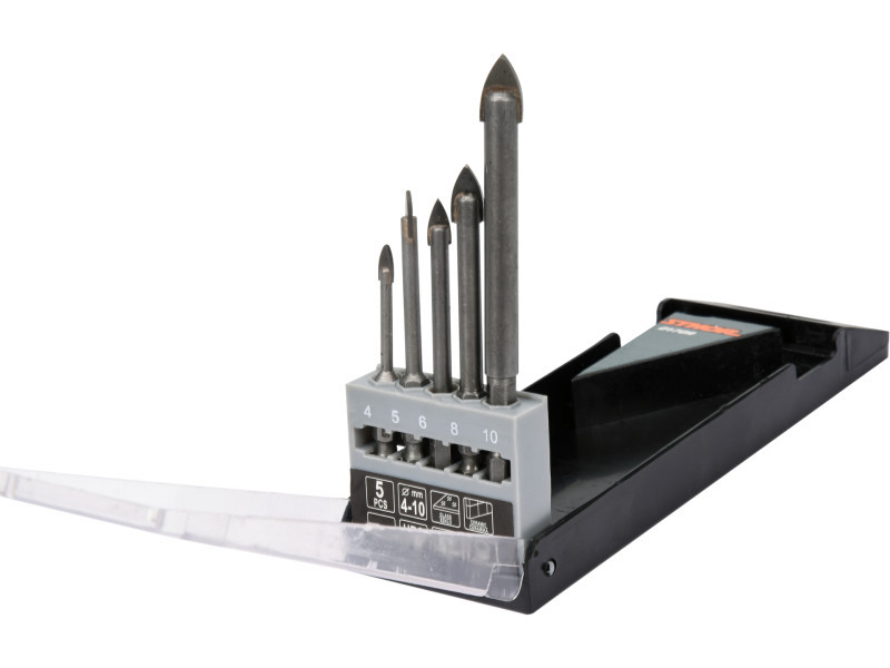Üveg- és kerámiafúrókészlet. Precíz és tiszta lyukak fúrására tervezték , peremforgácsolás nélkül üvegbe, kerámiába, porcelánba.