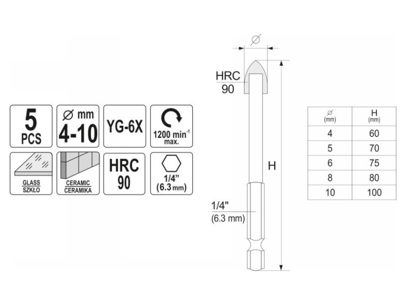 - Fúrófejek: 4, 5, 6, 8, 10 MM