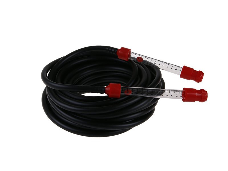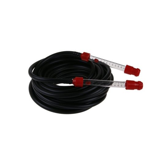 Tömlő vízmérték 15m, egy egyszerű építési mérőeszköz a sík méréséhez az építkezésen. A méréshez két munkás szükséges. Ha van tapasztalatuk és jól tudnak vele mérni, akkor szinte ugyanolyan pontosságot érnek el, mint egy optikai szintezőkészülékkel rendelkező földmérő.