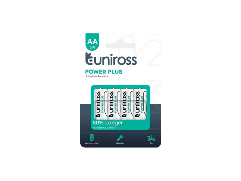 A UNIROSS alkáli elemek kiváló teljesítményt nyújtanak mindennapi használatra, megbízható energiaellátást biztosítva a készülékek számára.