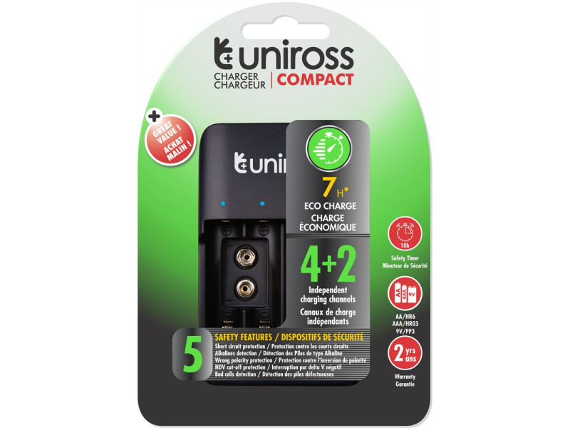 Ez a sokoldalú akkumulátortöltő korszerű Nikkel-Metal Hydrid (NiMH) technológiával lett tervezve, így széles körű akkumulátor-méretekkel kompatibilis, beleértve az AA, AAA és 9 V Block akkumulátorokat is.