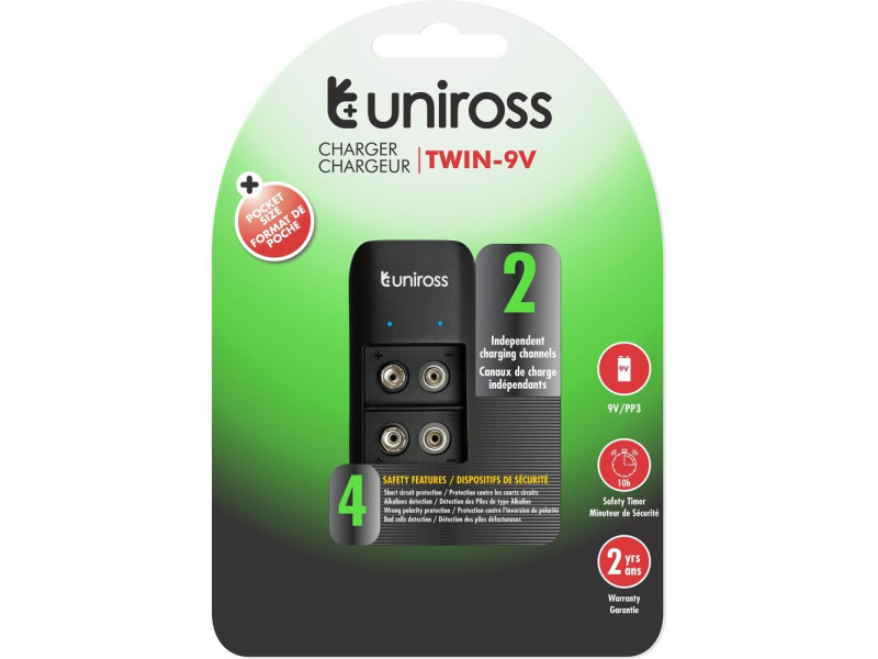 UNIROSS blokk akkumulátor töltő 2 fiókos 9 V