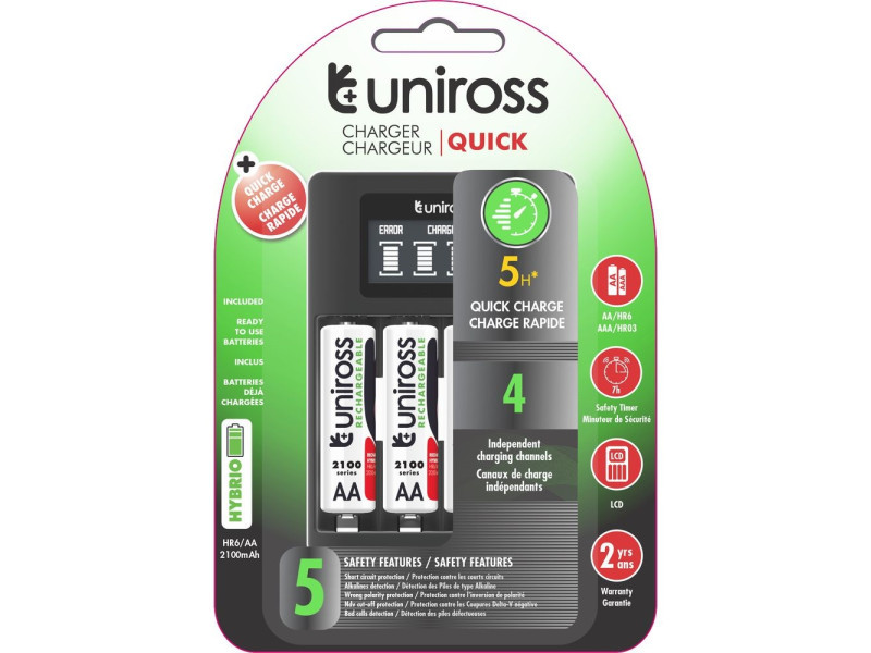 - Ötszörös védelem: behelyezett elemek, hibás akkumulátorok automatikus felismerése, rövidzárlat és fordított polaritás elleni védelem, túltöltés elleni védelem –ΔU kikapcsolással és biztonsági időzítővel (7 óra)