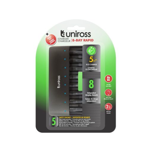 UNIROSS processzoros gyorstöltő 8 fiókos AA/AAA védelemmel