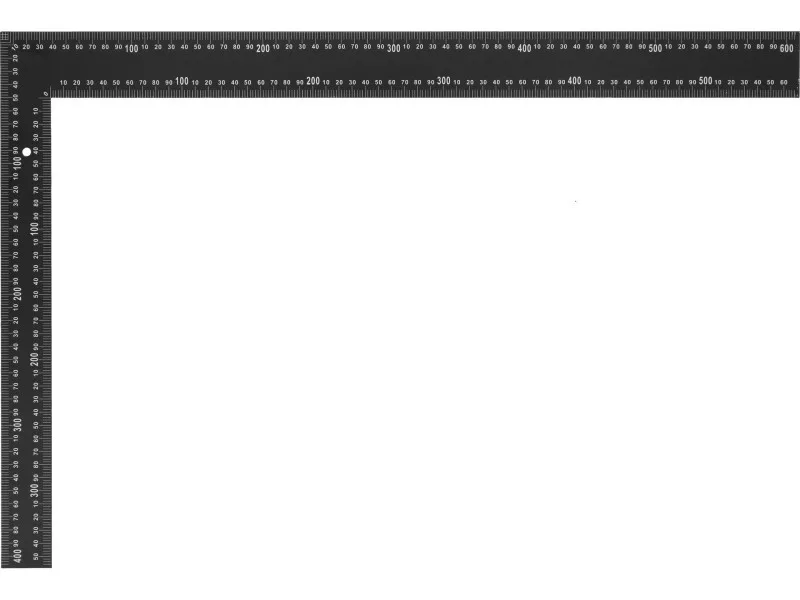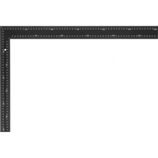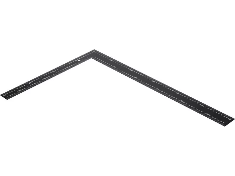 Vastag fémlemezből készült lapos szögtartó, építési és mérési munkák során a derékszögek meghatározásához. Fekete lakkozott, egyik oldalán világos fehér milliméteres, másik oldalán hüvelykes beosztással.