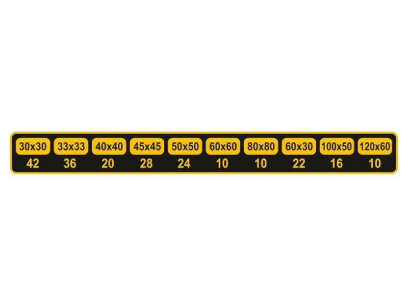 Az ékek és kapcsok száma 1 m2 -enként a csempe méretétől függően: