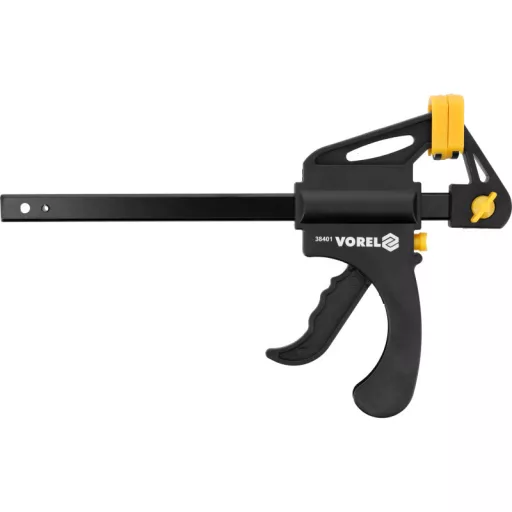 Gyorsan működő ácskapocs. Pontos egykezes működtetést tesz lehetővé. A hatékony szorító- és csúszómechanizmus garantálja a pofák párhuzamos működését. Ennek a modellnek a különlegessége a szétterítés kiegészítő munkafunkciója. A szorító másodpercek alatt beállítható, és a széttoló például ajtókeretek szereléséhez használható. A puha állkapocsfedelek megvédik a befogott anyagot a sérüléstől. Ácsmunkákhoz. Hatékony rögzítés vagy szétfeszítés a pofák beállításától függően. Gyorsan rögzíthető asztalos szorító. Pontos egykezes kezelést tesz lehetővé. Hatékony szorító- és csúszómechanizmus garantálja a pofák párhuzamos működését. A modell különlegessége a szorító kiegészítő munkafunkciója. A szorító másodpercek alatt beállítható, és a széttoló például ajtókeretek szereléséhez használható. A puha állkapocsfedelek megvédik a rögzítendő anyagot a sérüléstől.