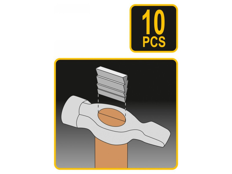 Különböző méretű kalapács ékek készlete. A különböző méretek lehetővé teszik, hogy az ékek optimálisan alkalmazkodjanak a használt szerszámhoz.