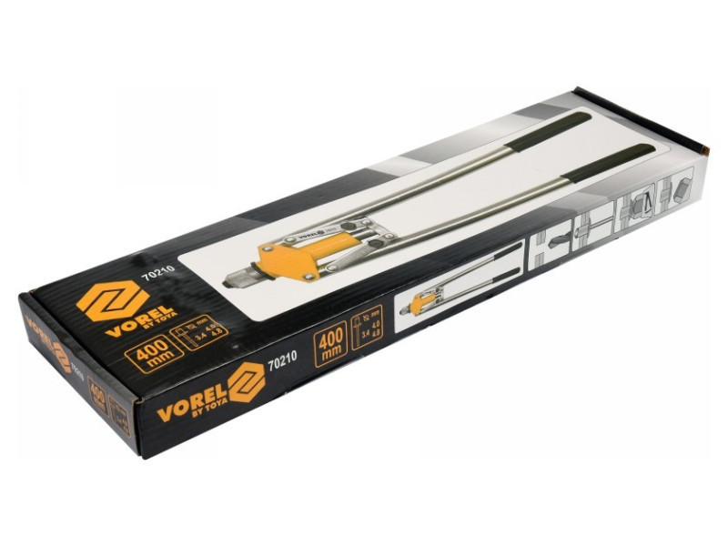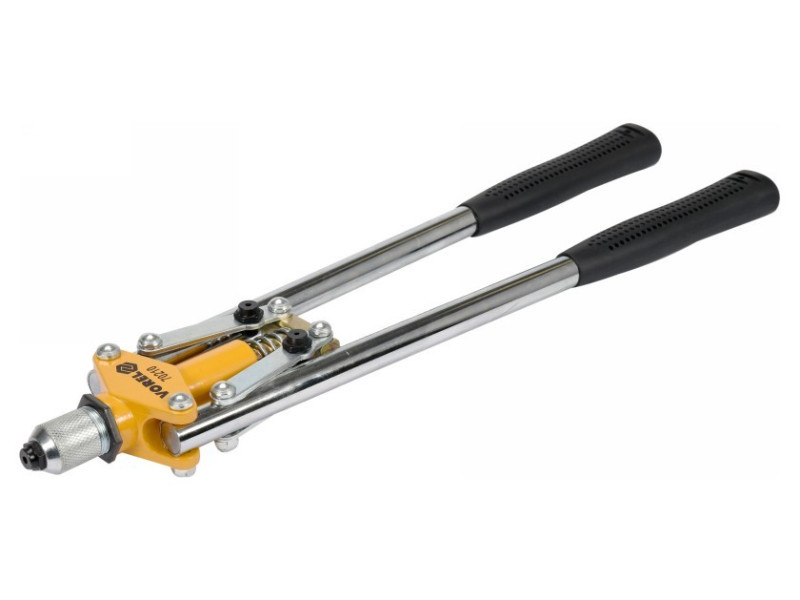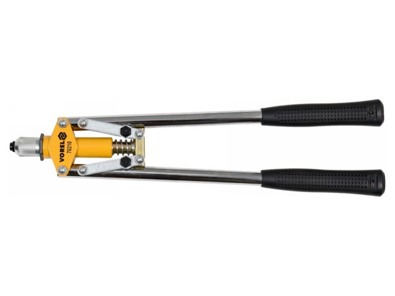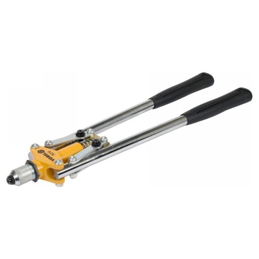 Vorel márkájú karos szegecselőgép, amelyet acélból, rozsdamentes acélból és alumíniumból készült szegecsek kezelésére terveztek.