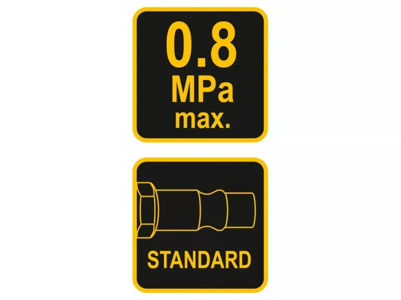 A test, a tömlő és a hegy robusztus felépítése hosszú élettartamot garantál. Nyomásmérő legfeljebb 8 bar maximális nyomással.