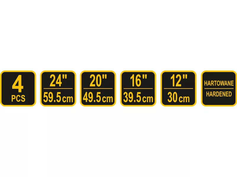 Edzett acélból készült négy darabos kanálkészlet. Hasznos a gumiabroncsok felszereléséhez és leszereléséhez.