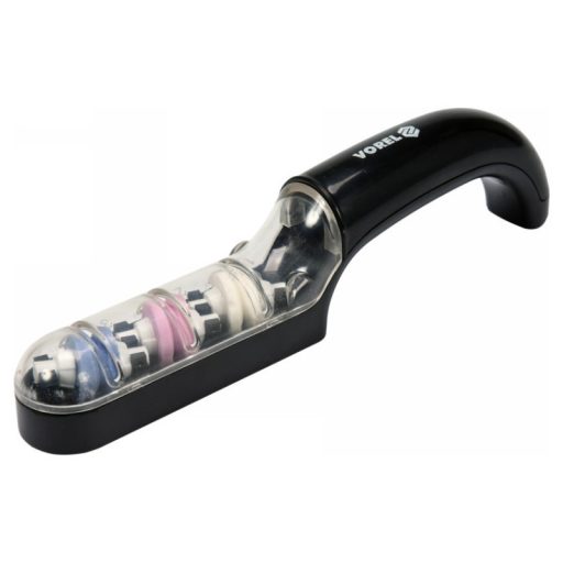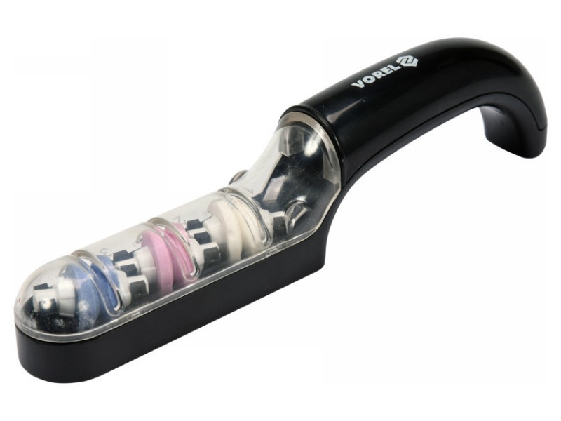 Három különböző keménységű dupla tárcsával ellátott élező, amelyet a kések és más hasonló szerszámok hatékony élezésére terveztek. A test sérülésálló műanyagból készült, amely egyben víztartályként is szolgál. A csiszolókorongok"nedvesen" működnek, növelve az élezés hatékonyságát.