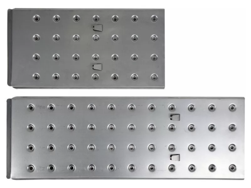 A platformok csúszásgátló fülekkel vannak ellátva a leesés kockázatának csökkentése érdekében. A rögzítőfülek viszont a munka közbeni csúszás ellen biztosítják a platformokat.
