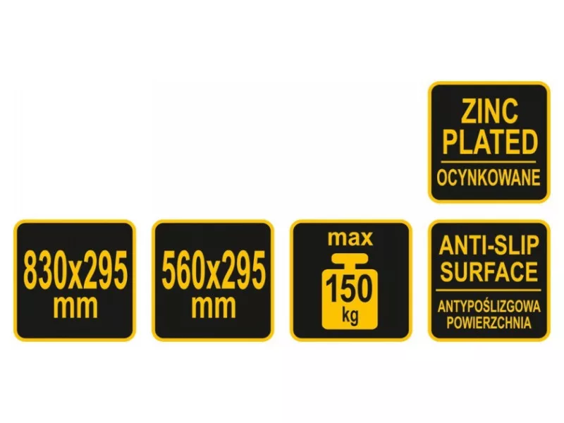 Nagy teherbírású horganyzott acéllemezből készülnek, amely 150 kg terhelhetőséget biztosít.