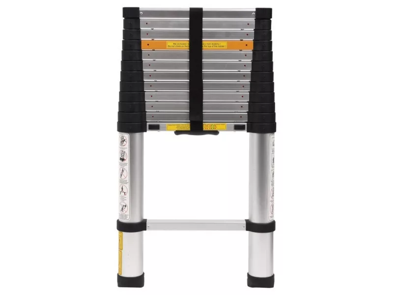 Teleszkópos alumínium létra 3,8m. 13 lépcsőfok. Teleszkópos létra automatikus összecsukó rendszerrel.A legújabb európai uniós irányelvnek és az EN131-6 szabványnak megfelelően készült: 2015. Ez a funkció nagyon kényelmessé, gyorsan és mindenekelőtt biztonságossá teszi az összecsukási folyamatot. Megakadályozza az ujjak összenyomódását.
