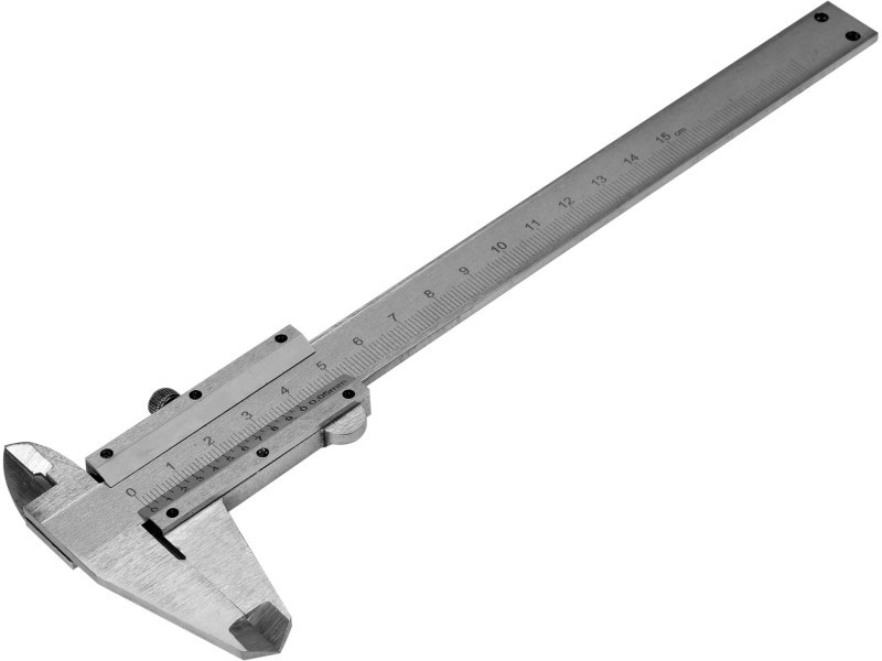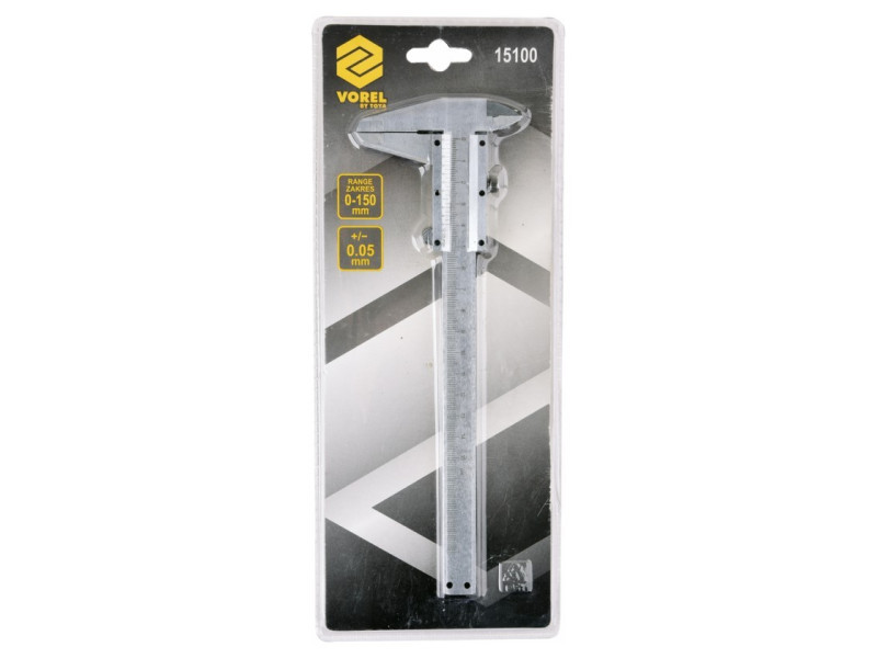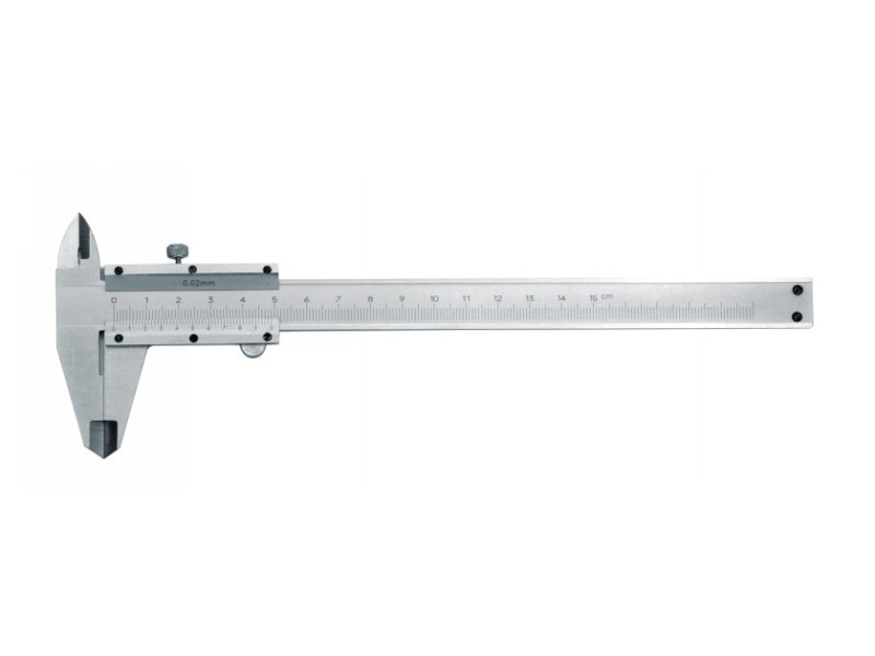A rozsdamentes acélból készült klasszikus mérőkalauz 0-150 mm közötti méréseket tesz lehetővé 0,05 mm pontossággal.