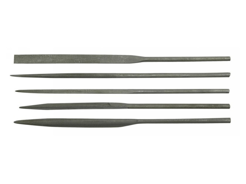 A készlet öt reszelőt tartalmaz precíz munkákhoz, például kulcskészítéshez. Az alapprofilok: lapos, félkör alakú, kerek, háromszög alakú és késszerű. Tipp nélküli plasztik keretek. Precíz fémfeldolgozáshoz, néhány műanyaghoz és más anyagokhoz