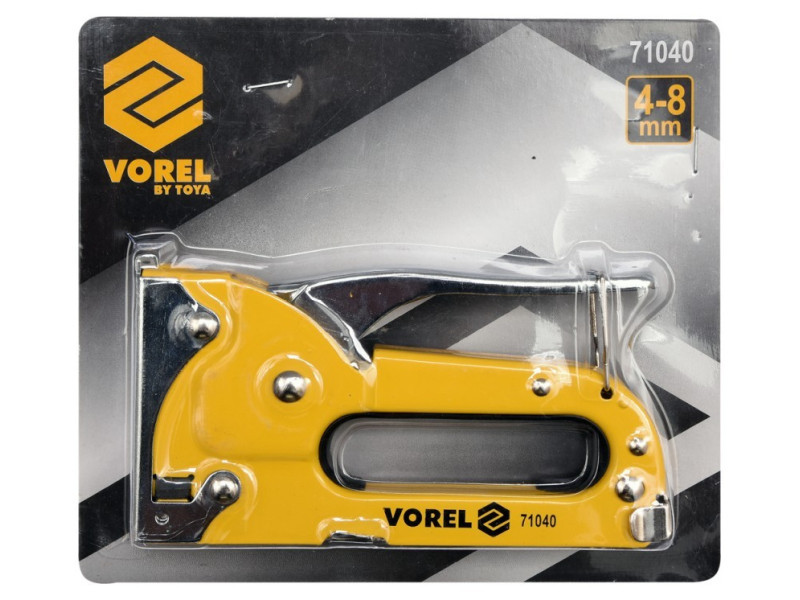 A tűzőgép tipikus acél négyszögletes kapcsok beütésére szolgál 4-8 mm hosszúságtartományban. Tűzőgép állítható ütőrugónyomással - állítható ütőerővel.