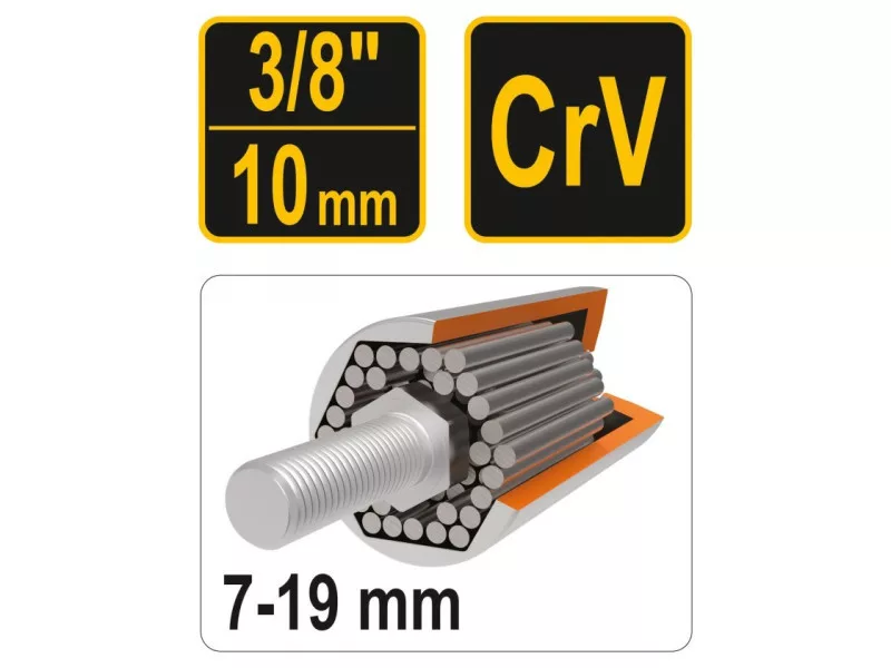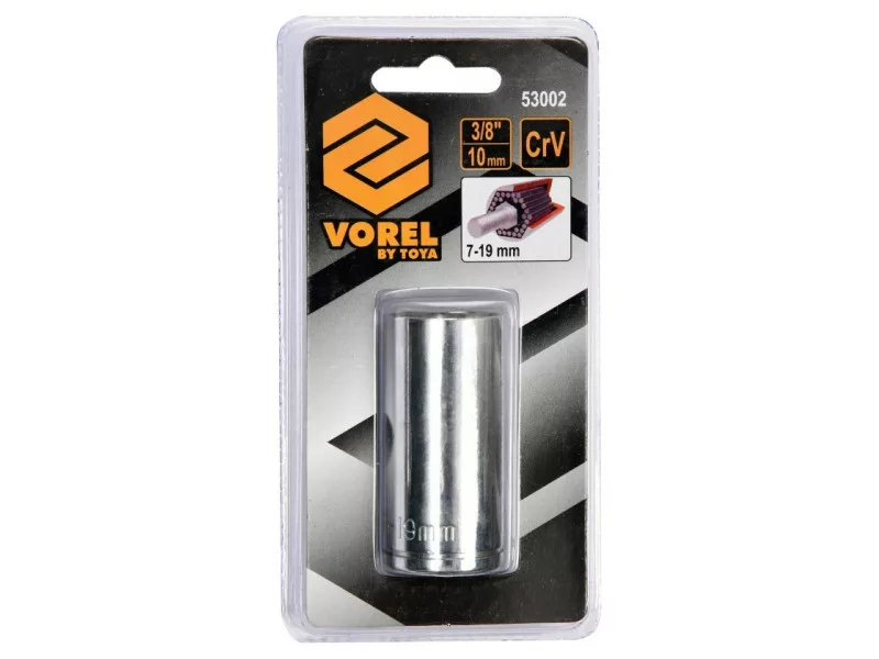 Vorel 53002 univerzális tűhegyes foglalat. Különböző fejformájú csavarok és csavarok elforgatására szolgál, beleértve az átformált, és szokatlan fejformájúakat is, mint például az egyenes horog, szemhorog, stb. A foglalat kiváló minőségű CrV króm-vanádium acélból készül, amelyet szilárdság és rugalmasság jellemez. Alkalmas dugókulcsos és ütvecsavaros csavarkulcsokkal való használatra. Egyedi kialakítású, az esztergálandó munkadarabhoz alkalmazkodó rudakkal.
