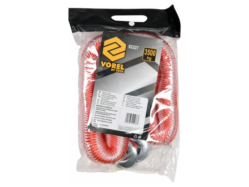 Rugalmas kábel kampókkal, amelyet 3500 kg súlyú járművek vontatására terveztek.