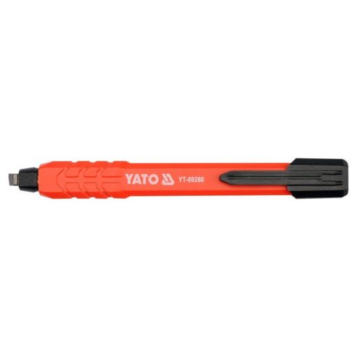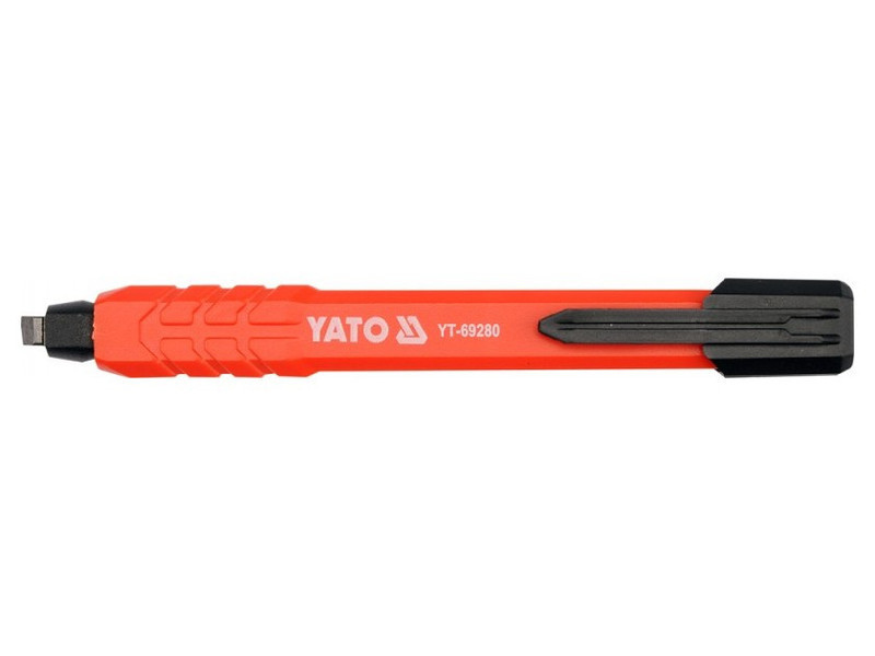 Technikai alkalmazásokhoz való ceruza széles, automatikusan behúzható grafit tollheggyel. Könnyű műanyag test, rugalmas klippel a kitűzéshez. A használt grafithegytől függően különböző anyagokhoz dedikált.