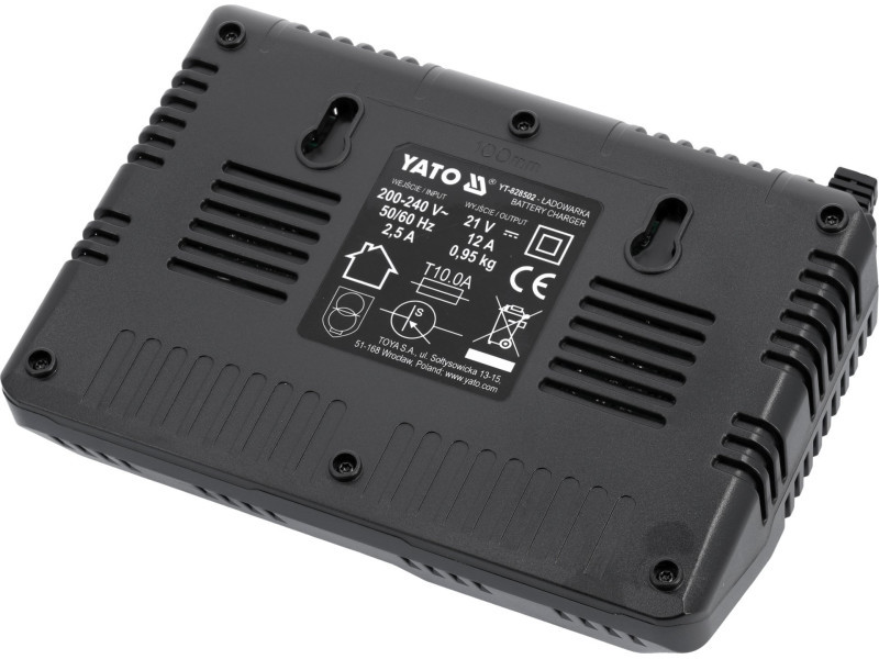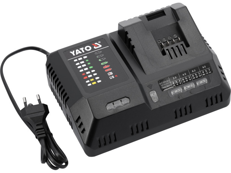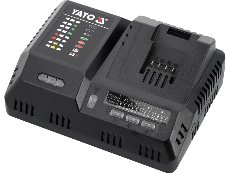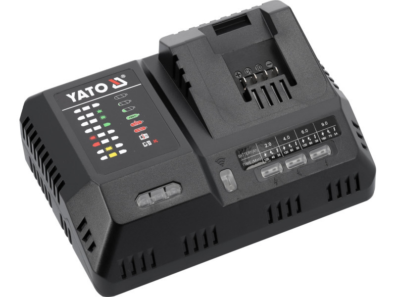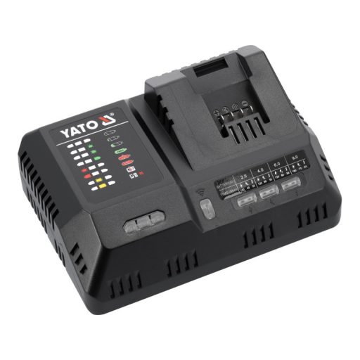 A leggyorsabb lítium-ion akkumulátor töltő a piacon a YATO 18 voltos rendszerhez. A töltő érzékeli a csatlakoztatott lítium-ion akkumulátor típusát, és az akkumulátor által felvehető maximális biztonságos árammal tölti, az áramot 2A és 12A között adagolja. A töltő ventilátorral van felszerelve, amely a töltés során hűti a cellákat.