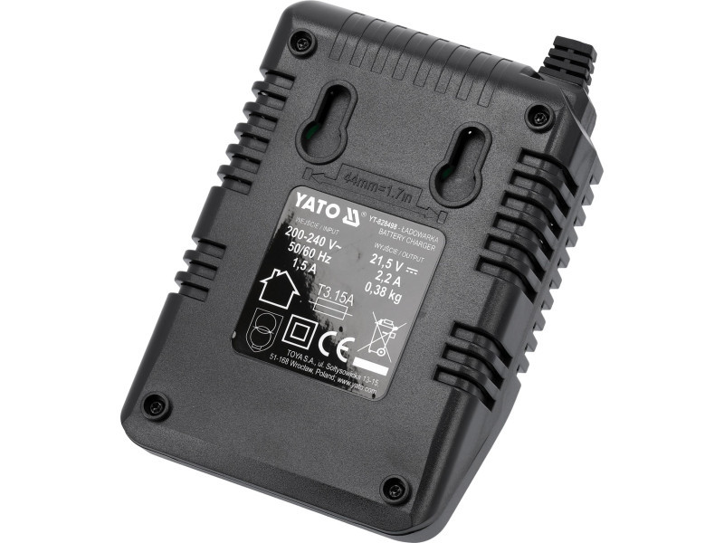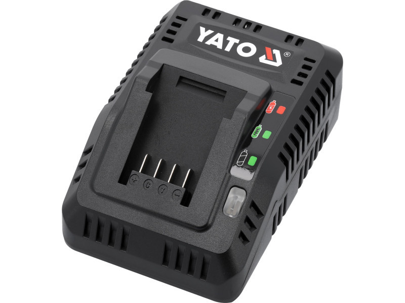 Az alap töltő minden YATO 18 voltos rendszerakkumulátorhoz. A beépített akkumulátor teljesítmény- és hőmérséklet-vizsgáló rendszer gondoskodik az akkumulátor élettartamáról. Nem kezdi el a töltést, ha a cellák túl melegek. Negatív hőmérsékleten tárolt akkumulátor esetén akkor kezdi meg a töltést, amikor az akkumulátor hőmérséklete eléri a +5 Celsius fokot.