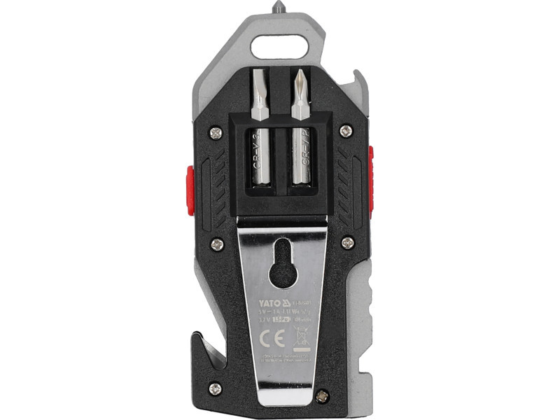 | Jellemzők | zseblámpa, üveg elsodródás, kés, pl. övekhez, csavarhúzó 2 bit - lapos és Phillips - csavarhúzóval, sípszó, italnyitó |