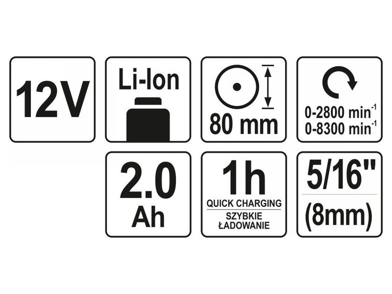 | Szerszámtartó mérete | 5/16" (8,0 mm) |