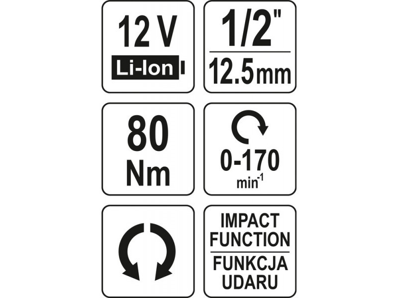 - Hozzáillő Yato 12 V-os rendszerakkumulátorok: YT-82909 (2 Ah) YT-82910 (4 Ah)
