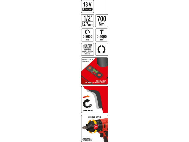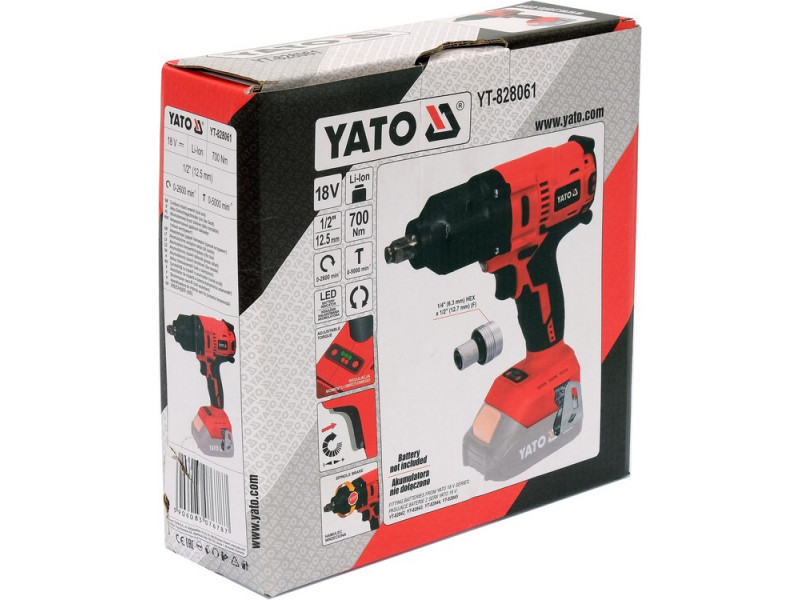 YATO Akkus ütvecsavarozó 1/2" 700 Nm szénkefe nélküli 18 V (akku és töltő nélkül)