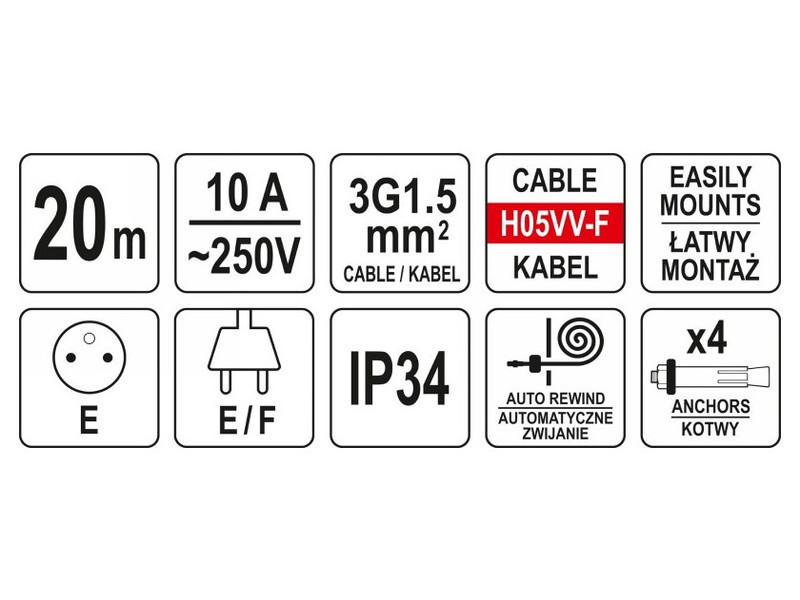 - kábelhossz: 20 m