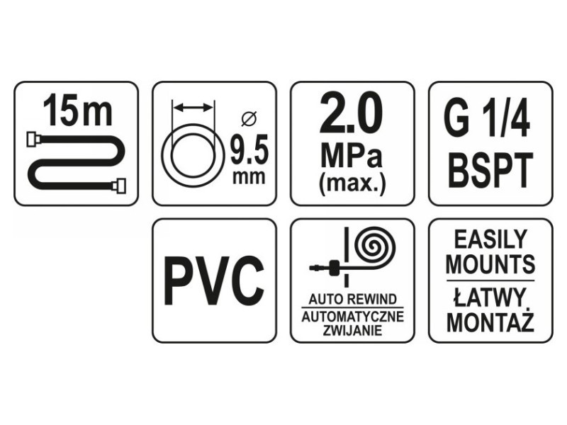 YATO Automata pneumatikus tömlődob 9,5 mm x 15 m