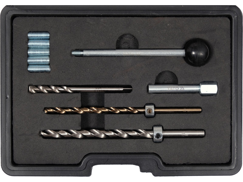 | Alkalmazás | javítóhüvely M6x1 mm x5, fúró ütközővel x2 (6 mm, 7 mm x 8 mm), vezetőhüvely, HSS M8X1 csap, útmutató az ujjakhoz |