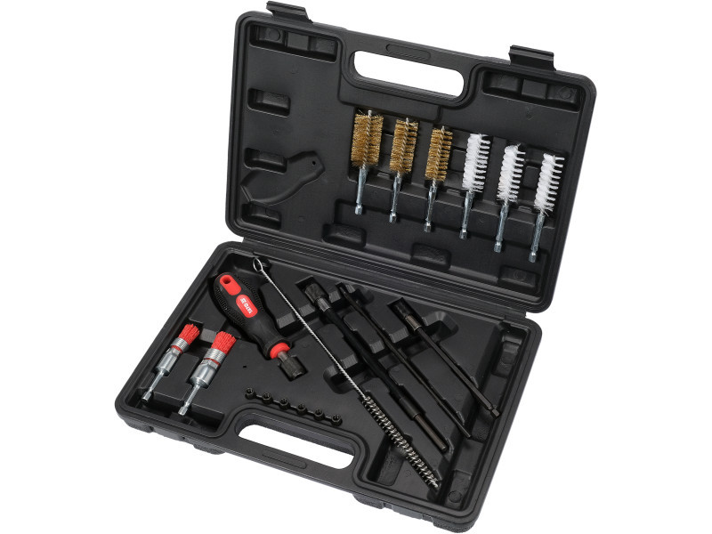 | Állítsa be a tartalmat | első kefe x2, acél hosszabbítás, hosszú ecset, rugalmasság, biztonsági sapka x6, sárgaréz kefe x3, nylon kefe x3, kiterjesztés, fogantyú |