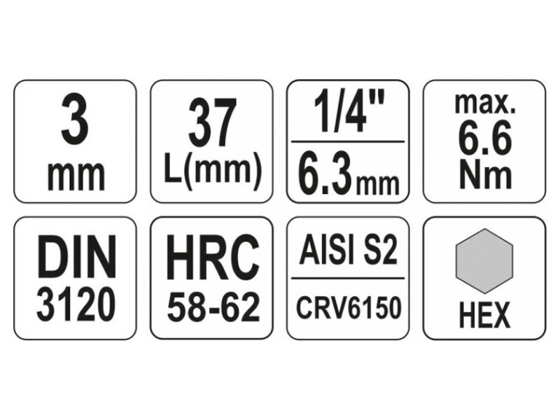 Professzionális HEX tengelykulcs, 1/4" hüvelyméret, 3 mm-es szár.