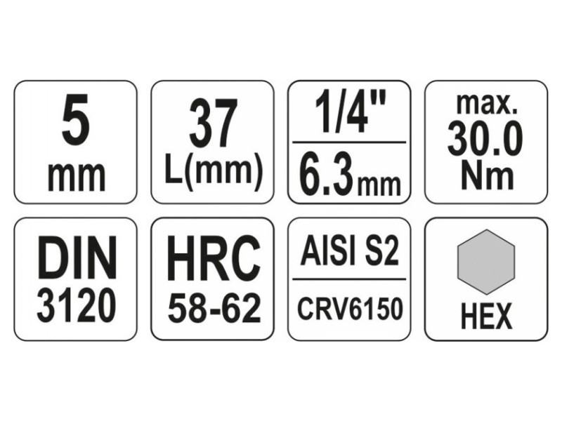Professzionális HEX tengelykulcs, 1/4" hüvelyméret, 5 mm-es szár.