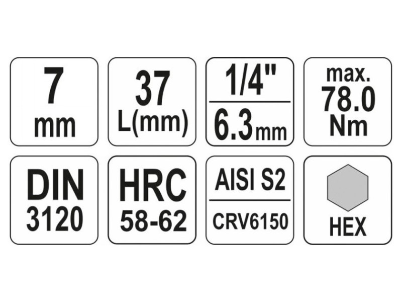 Professzionális HEX tengelykulcs, 1/4" hüvelyméret, 7 mm-es szár.