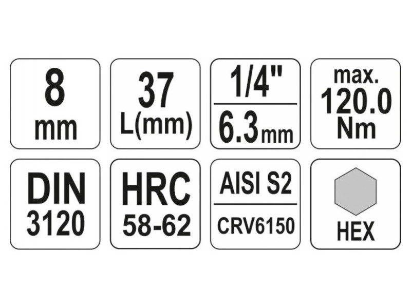 Professzionális HEX tengelykulcs, 1/4" hüvelyméret, 8 mm-es szár.