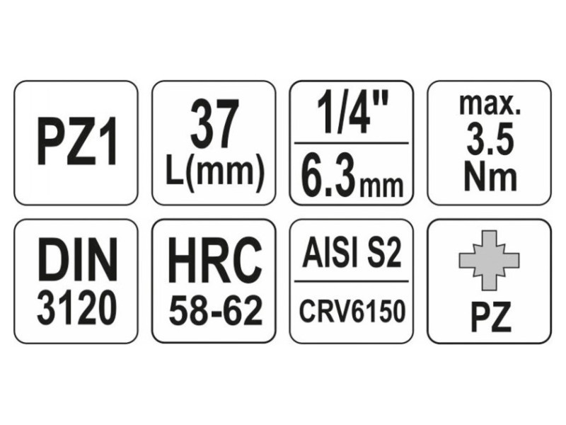 | Pozidriv hegy mérete (PZ) | PZ1 |