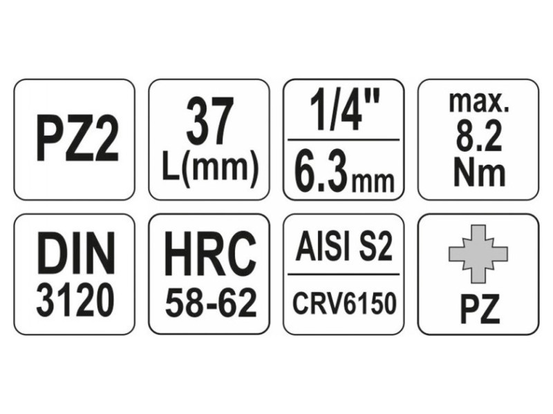 | Pozidriv hegy mérete (PZ) | PZ2 |
