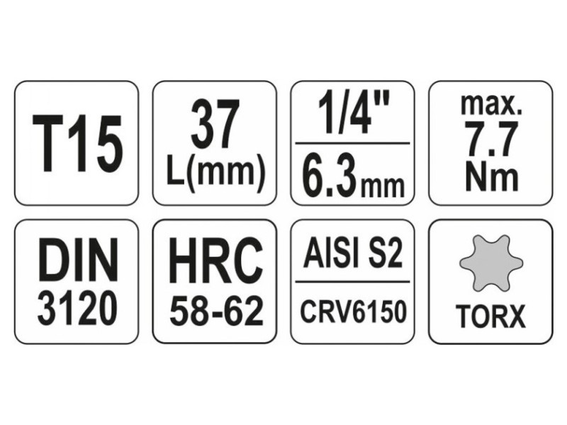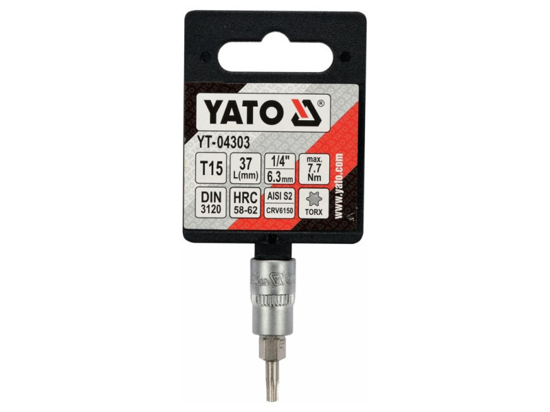 Professzionális Torx tengelykulcs, 1/4" hüvelyméret, T15-ös szárméret.